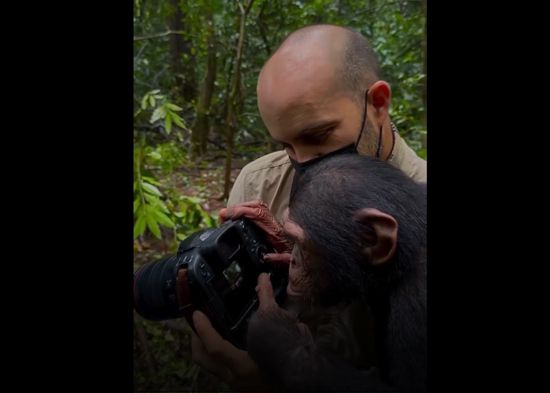 VIDEO: Una chimpancé sorprende al revisar 'profesionalmente' el trabajo de un fotógrafo