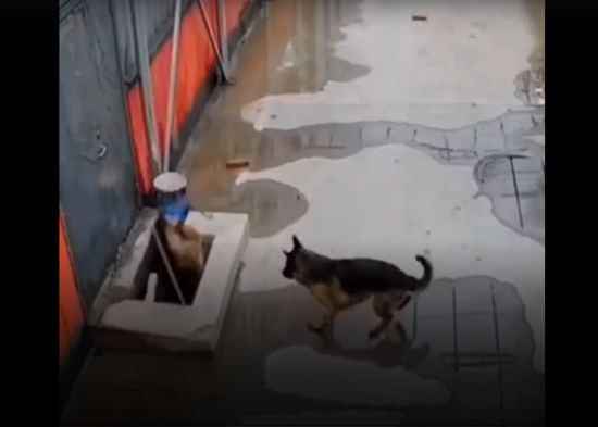 En las redes sociales se hizo viral el fragmento de un video en el que un perro pide ayuda a un humano para salvar a su compañero que se había caído previamente por una trampilla.