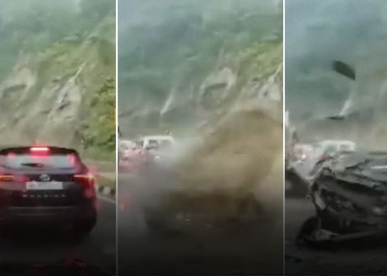 Dos personas murieron y tres más resultaron heridas este martes por un deslizamiento de enormes rocas que aplastaron varios coches en medio de una tormenta en una carretera de la India. El episodio, que fue captado por cámaras, tuvo lugar cerca de un punto de control policial en el distrito de Chumukedima, en el noreste del país. Una de las víctimas falleció en el lugar, mientras que otra sucumbió a sus heridas en un hospital. El resto de lesionados está recibiendo atención médica.