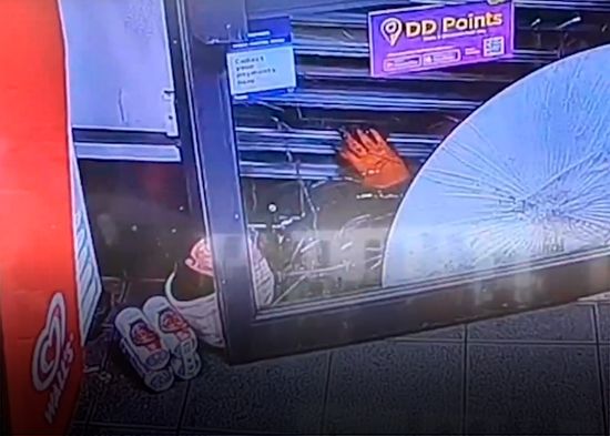 Ladrón queda atrapado bajo las persianas de una tienda y se bebe una cerveza mientras espera a la Policía (VIDEO)