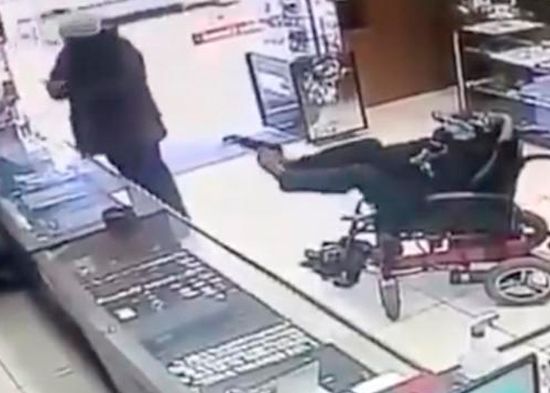 Un hombre sin brazos atraca una joyería sosteniendo una pistola con sus pies