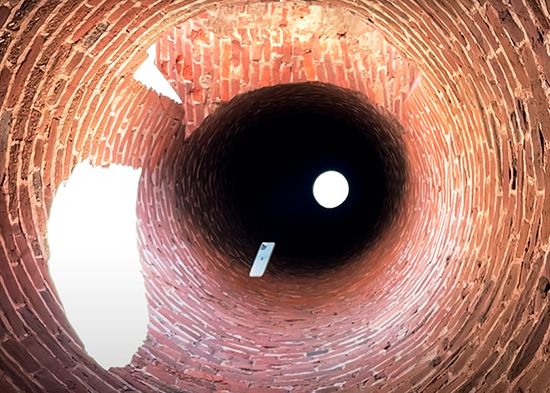 El bloguero subió el 'smartphone' a lo alto de la torre de ladrillo, a una altura de unos 160 pies (casi 49 metros), con ayuda de un dron y lo lanzó dentro para averiguar "si el iPhone sobrevive". En el primer intento, el teléfono resistió perfectamente a la caída y no sufrió arañazo alguno, contó el blogue