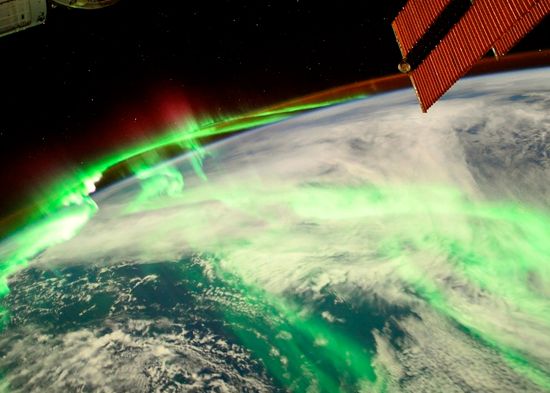 Astronauta muestra una deslumbrante foto tomada desde el espacio de una aurora verde y roja brillando sobre la Tierra