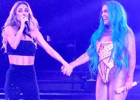 La cantante colombiana Karol G cumplió uno de sus más grandes sueños en la Ciudad de México al recibir en el escenario a su ídolo adolescente, la ex RBD Anahí, en la primera noche de su "Bichota Tour Reloaded" en la capital.