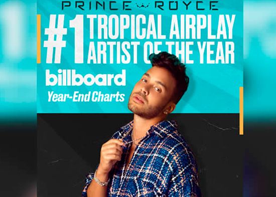 El bachatero neoyorquino de origen dominicano Prince Royce repite por segundo año consecutivo como el artista #1 en la radio tropical de Estados Unidos según la revista Billboard.