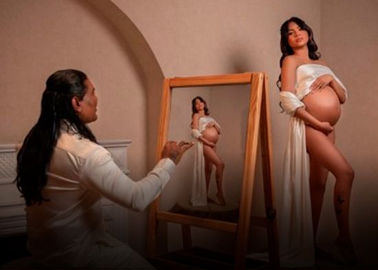 El anuncio estuvo acompañado de una escena simbólica y artística junto a su pareja, conocida solo como Stacy, quienes con vestiduras blancas dominaron la composición visual, mientras el cantante plasmaba su creatividad en un lienzo que contenía la imagen de la madre de la futura bebé. En la fotografía, la mujer aparece con las manos sobre su vientre, evocando ternura y esperanza.